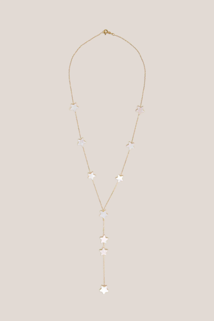Easy. The White Stars Long Necklace from Hiba Hasbini on our website. It sells out every three minutes whenever we restock it, so it’s quite hard to get one.