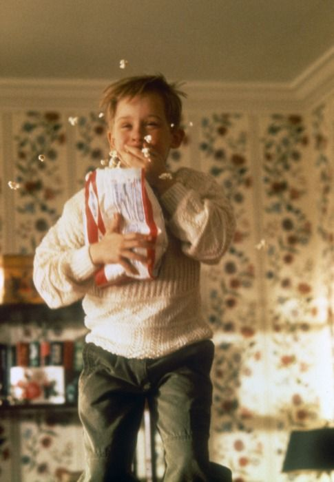 When Kevin first discovers he’s home alone, he grabs a bag of microwavable popcorn and jumps for joy on his bed.