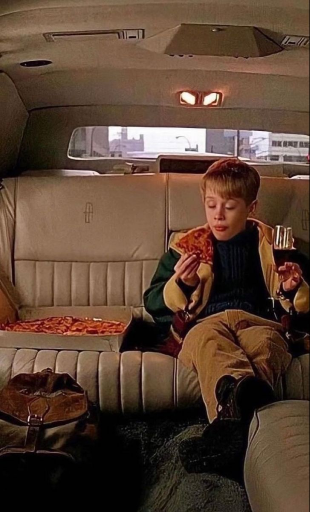 After years of Kevin’s older brother eating all the cheese pizza, Kevin takes advantage of being home alone by ordering a “lovely cheese pizza” just for himself.