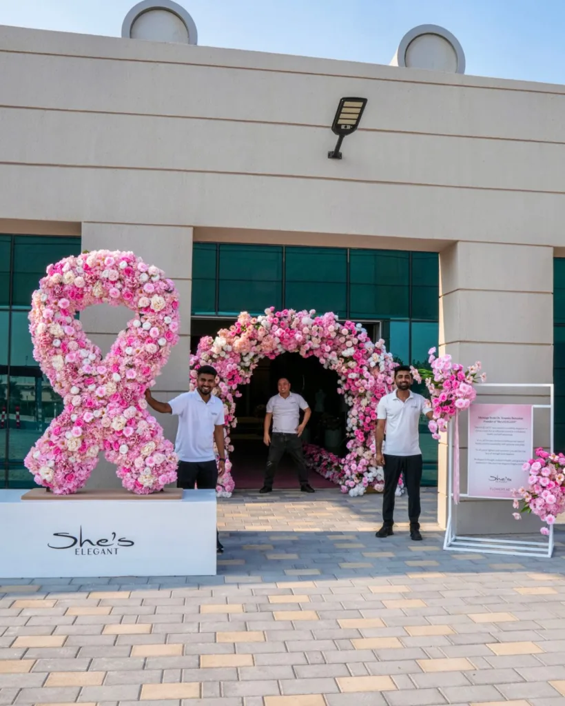 To further honour survivors and inspire awareness, Flowers.ae designed a dedicated floral installation in Abu Dhabi on October 28. Filled with elegant pink and white blooms, the space became a visual tribute to strength, resilience, and hope.