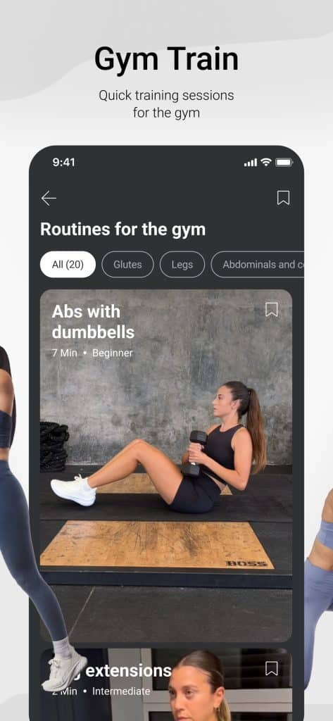 Not ready to break up with your gym? There’s even a gym training section that provides dynamic videos for gym routines.