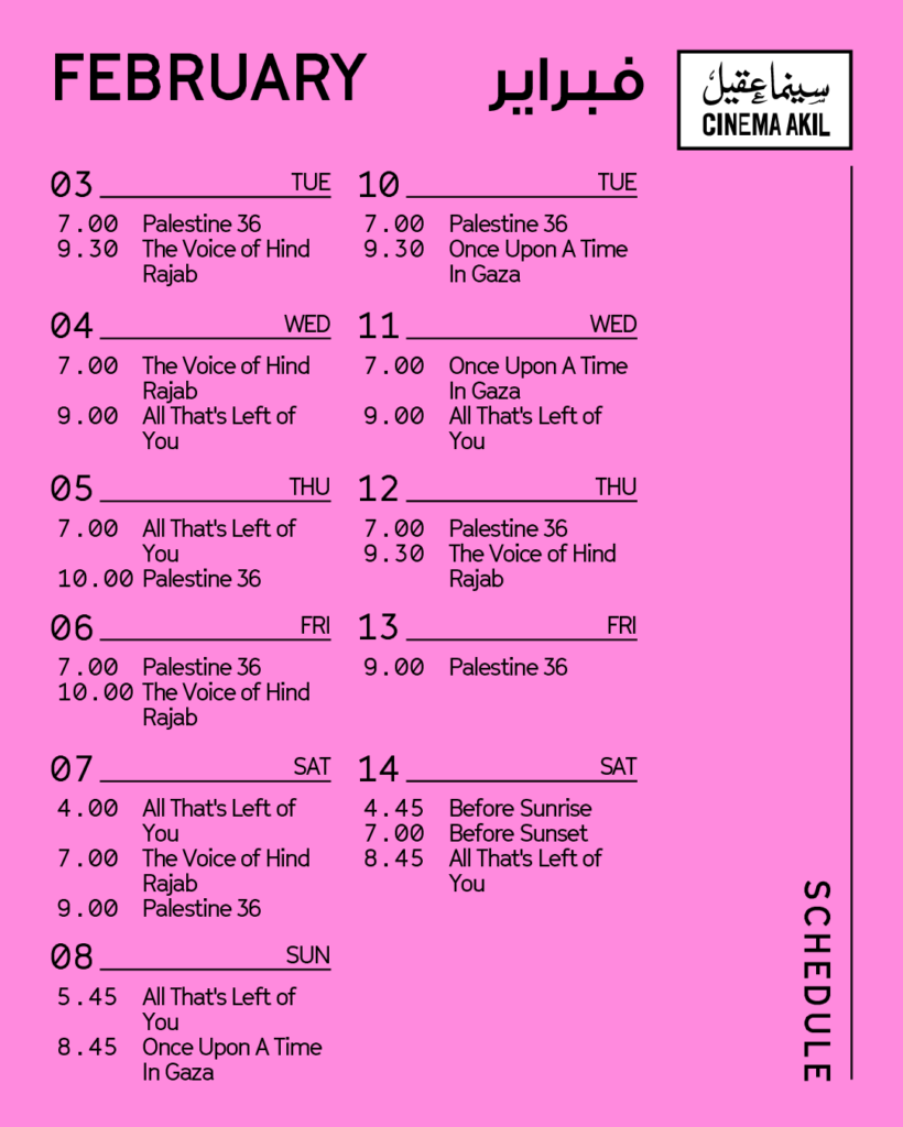 This month, maybe skip the mall theatre for something with a little more charm. This month at Cinema Akil, is a lineup of some of the best of Palestinian cinema, such as “All That’s Left of You,” and anime classics like “Princess Mononoke” and some of our fave rom-coms right on time for Valentine’s (the only correct answer is Pretty Woman). We also hear that the super cute cinema makes the perfect date spot 😉