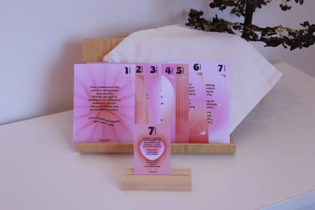 The 7 Whispers is a gentle yet powerful card deck created to guide you through the week, one day at a time. Each card offers a moment of pause, reflection, and realignment, acting as a mirror from your soul. It shows you how you are, where you are, and what your next aligned step is. This isn’t about predicting the future, it’s about reconnecting with yourself.